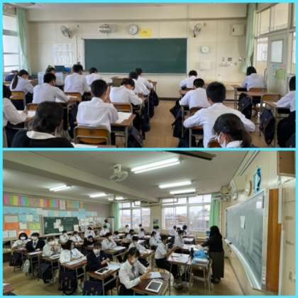 本日、3年生は「令和3年度大阪市英語力調査」を受検しました。