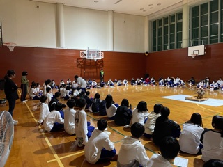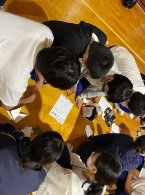この先生はだれでしょう?ゲーム、逆ビンゴで楽しんでます。