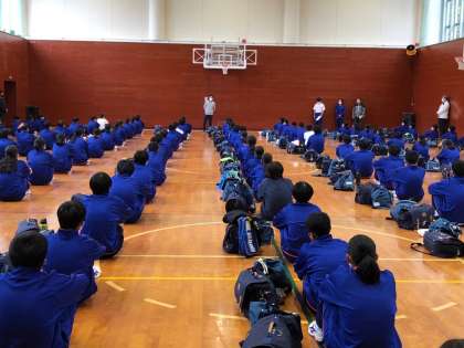 さきほど、退所式を終えて、バスに乗りました。いま車内からは、右側に日本三景の一つ、天橋立がみえています。浜辺で学年写真撮る予定でしたが、雨が降ってきたため、中止にしました。全員元気にしています。かなり疲れている様子です。