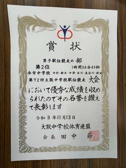 11月13日(土)に行われた第72回大阪中学校駅伝競走大会は、準優勝という結果に終わりました。
