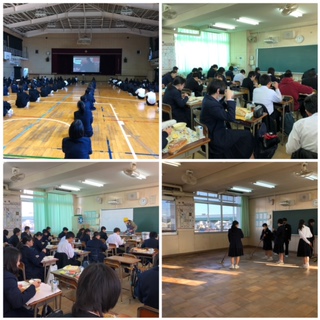 今日は2学期の最終日です。2限の学年集会では「非行防止教育」の一環で、旭警察署から届いたDVDを見ました。近年SNSを通したトラブルが急増しているということで、身近に起こりえる被害が紹介され、被害にあわないためにはどうしたらよいのかについて学習しました。