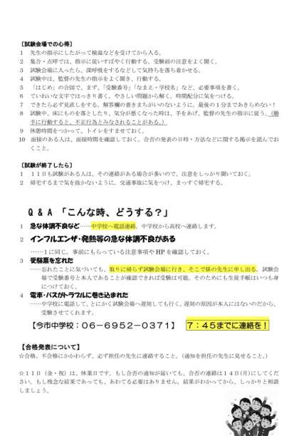 (高校への連絡は中学校を通じて連絡することになっているため、直接高校に連絡をしないでください)