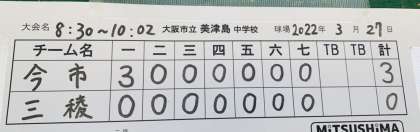 3月27日(日)に春季大会の3回戦を美津島中学校で行いました。