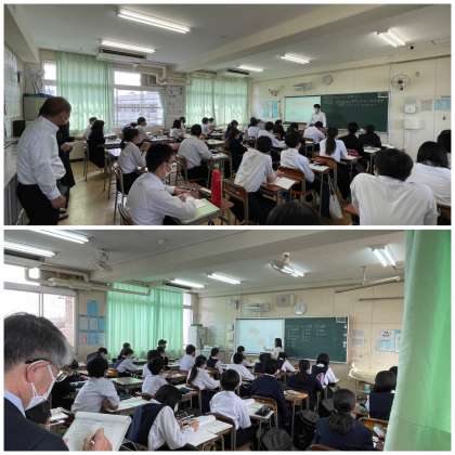 今日は、1限目(理科)と3限目(家庭科)に、研究授業が行われました。学力向上支援事業の一環として、大阪市教育センターからスクールアドバイザーの先生にご来校いただきました。