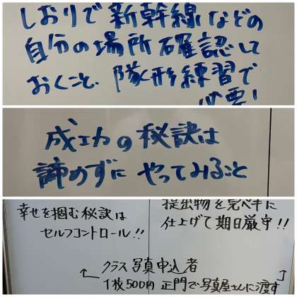 さて、今日の写真は各学年の連絡掲示板です。行事やテストなど、それぞれの学年で、その時その時に合った内容が書かれています。3年生は修学旅行が迫っているので、修学旅行関連、1・2年生は今年度初のテストへ向けての心構えでしょうか。