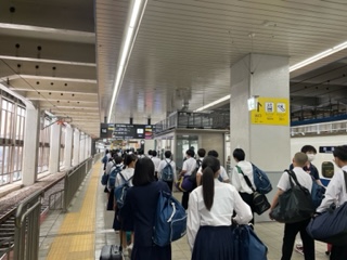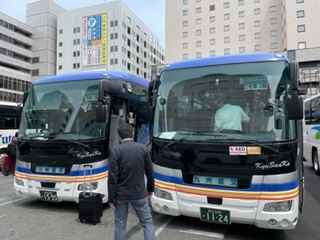 博多駅に到着し、今バスに乗りました。天気は良いです。