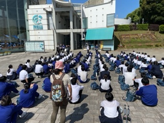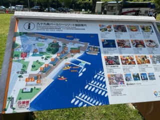 九十九島パールシーリゾートにつきました。今から、シーカヤック、ヨット、遊覧船+水族館のいずれかの体験を行います。
