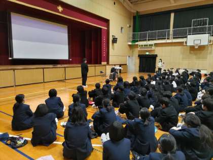 本日、車いすテニスでパラリンピックやアジア大会でご活躍された方を講師にお招きし、これまでの人生を振り返り、今市中学校71期生に向けて 「他者を思いやる、認め合える人に」というメッセージを送って頂きました。