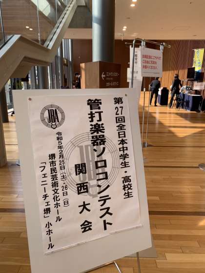 吹奏楽部の生徒1名(フルート担当)は、本日フェニーチェ堺で行われた、管打楽器ソロコンテスト関西大会に出場しました。