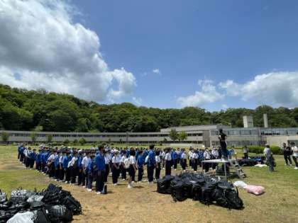目の前に広がる海を見て、「綺麗〜!」「すごい!」などの声も聞かれました。天気も晴れに向かっています。この場で多くの学びを得たいと思います。