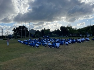 夜、雨が降っておりましたが、あがっております。朝の集いの後は、朝ごはんです。