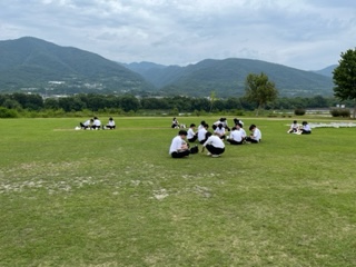 奇跡的に雨が降らず、外でお昼ご飯を食べることができました。