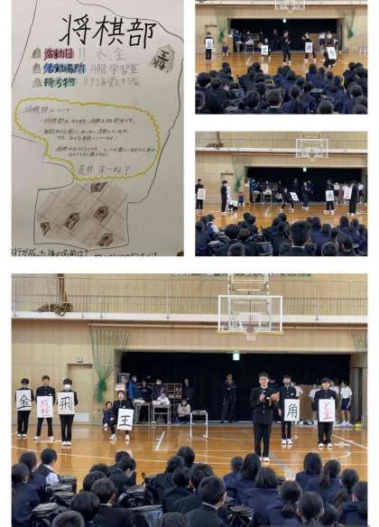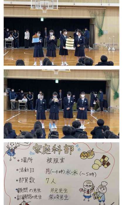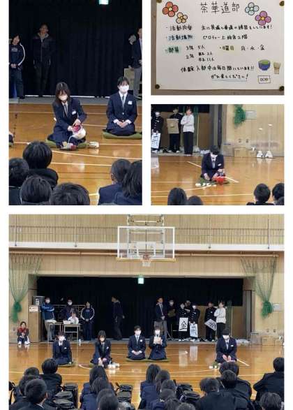 茶華道部、家庭科部、将棋部の紹介の様子です。