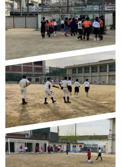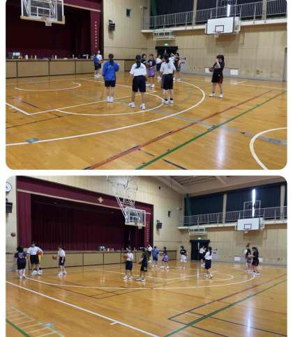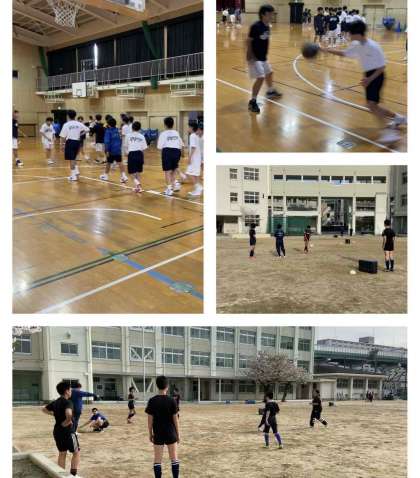 本日から仮入部が始まりました。1年生が各活動場所で元気に体験を行いました。グラウンドでは陸上部、サッカー部、ラグビー部、野球部が活動。体育館では男女のバスケットボール部が活動していました。