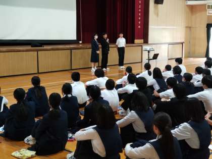 本日5限目に修学旅行実行委員会の総務部から現時点で決まっていること、レクリエーション部からは出演者の募集、イラスト部からはルールやマナーについての呼びかけポスターの作成、注意喚起がありました。