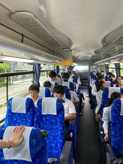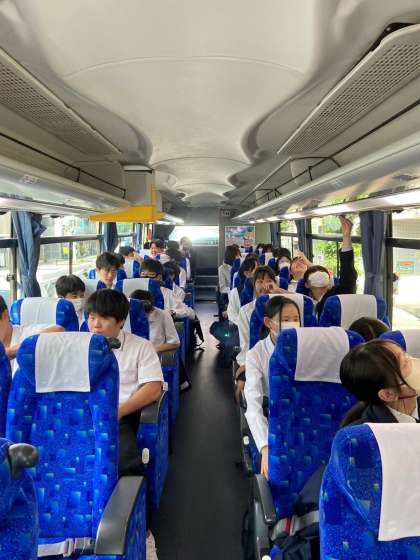 バスの車内では、おやつタイム&ビンゴ大会が始まっています。