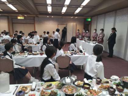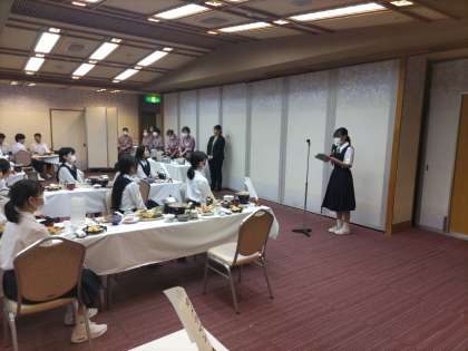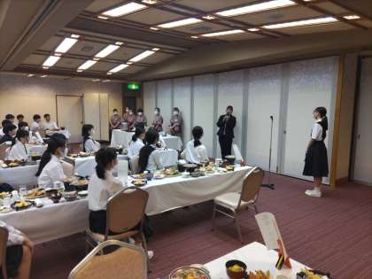 総務部の生徒が司会し、代表生徒が挨拶しました。