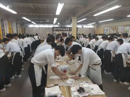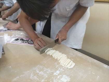 持ち帰り用のうどんを伸ばし、自分で切ります。