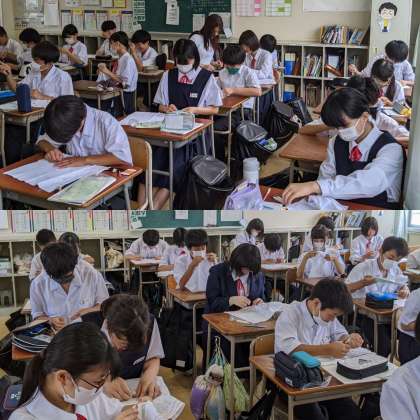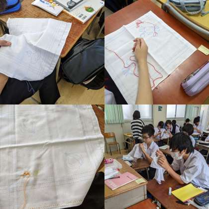 【家庭】1時間目の授業の様子です。名前の刺繍をしています。