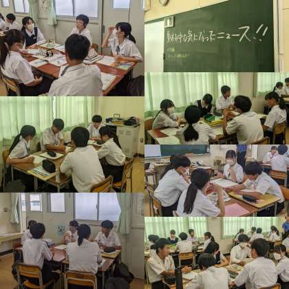 【社会】夏休み中の気になったニュースについてグループになって話し合って発表します。(2組)