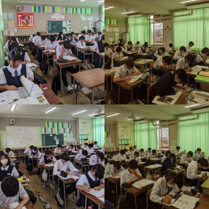 【社会・家庭】明日のテストに向けてそれぞれで勉強しています。(3、4組)