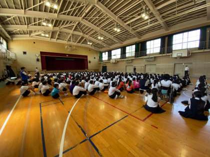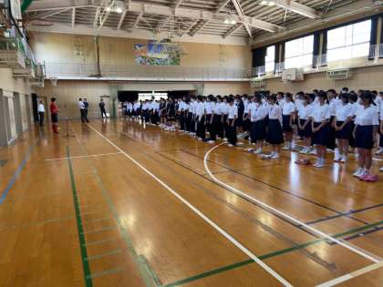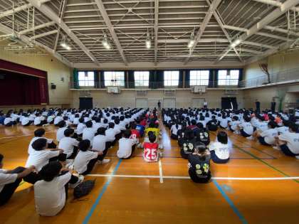 多くのクラブで3年生が引退し、新しく1・2年生の中から部長や副部長が決まり、新しくスタートするということで集会が開かれました。