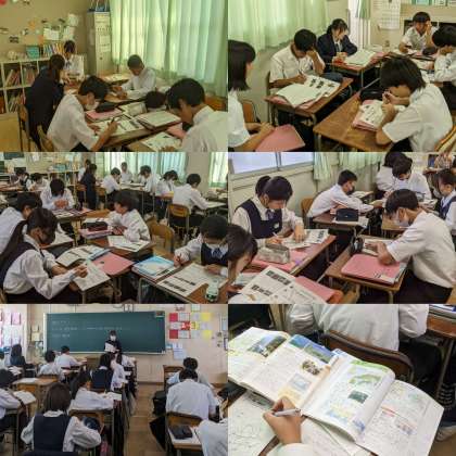 【社会】中国・四国地方の地形についてのプリントをしています。(3組)