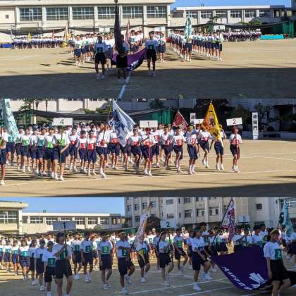 生徒の入場です。吹奏楽部の演奏曲『ワシントンポスト』の中、生徒会を先頭にしっかり腕を振って入場してきます。