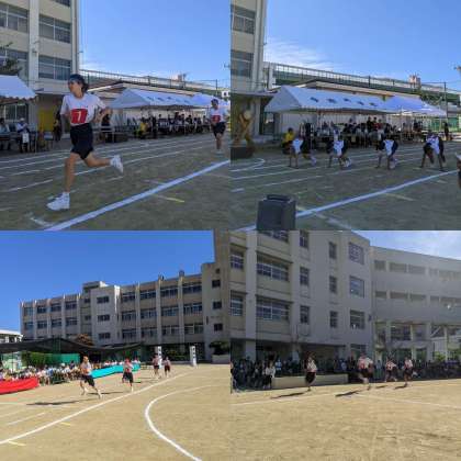 プログラム6番、200m走です。本部前からのスタートで、保護者観覧席からオープンコースになります。トラック1周の競技になります。