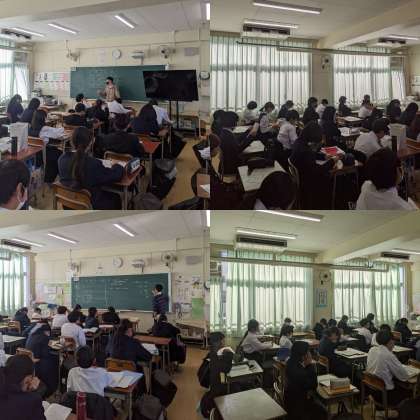 先週におこなわれた期末テストが返却されています。どの教科も問題の解説をしていました。間違えた個所を解けるように復習してください。復習をしないと実力が付きません。しっかりがんばってください。
