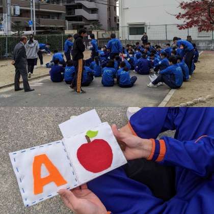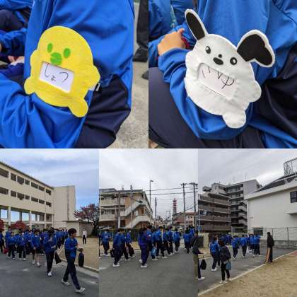 本日、あけのほし幼稚園に保育実習に行きます。家庭科の授業で作った名札と絵本を持って実習に向かいます。