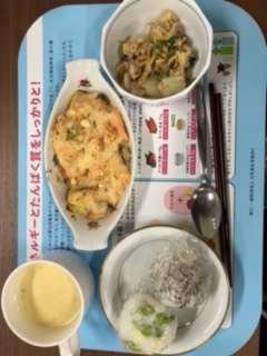 昨年度に引き続き家庭科部の12人が、旭区保健衛生課のしょうぶの会の方々と楽しく調理実習をおこないました。食育の観点からバランスのとれた食事の大切さを教えていただきました。クリスマスにちなんで、グラタンやスープをつくりました。