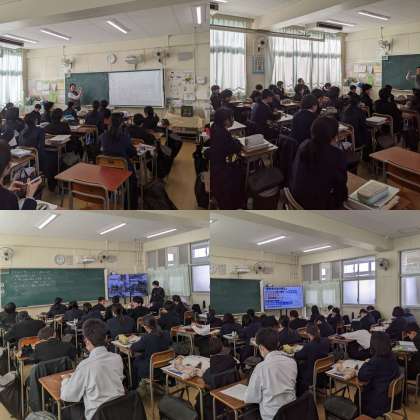 【美術】冬休みの宿題の年賀状を郵送します。授業は一人一台パソコンを使ってレタリングを学びます。(3組)