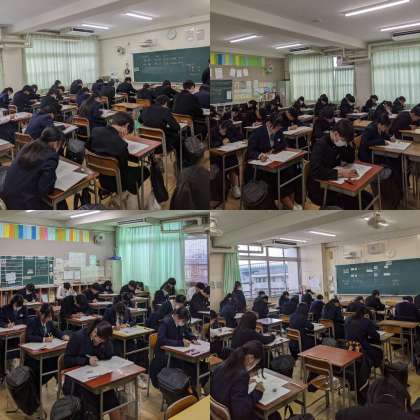 本日、3年生は学年末テスト最終日です。テスト終了後、私立入試の出願に行きます。