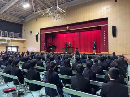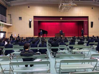 本日より3年生は卒業式の練習を始めました。卒業証書を受け取る練習を中心に本番に向けて全員で取り組んでいます。