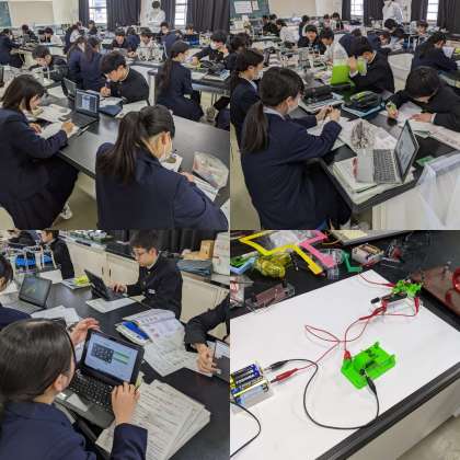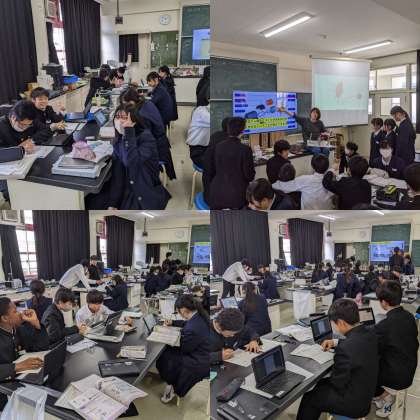 5時間目の理科の授業の様子です。フレミングの左手の法則について学んでいます。どのような法則なのかを調べて、実際にどちら向きに動くかを確かめます。