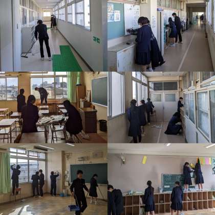 本日、1時間目に3年生が大掃除をおこないました。3年間使用した校舎を、感謝を込めて丁寧に清掃します。