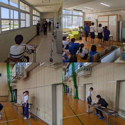 本日は、身長・体重の測定、聴力・視力の検査をします。教室では委員・係決め、給食の準備の仕方など学校生活をスタートさせるための準備をしています。