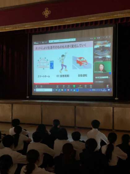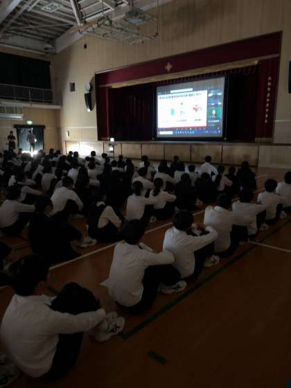 本日5限目に3学年そろって、NTTドコモの講師の方によるオンラインでのスマホ安全教室が行われました。