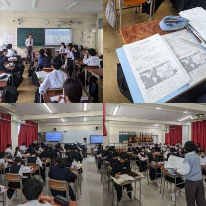 【社会】時差について学んでいます。東経・西経の違いを考えて何度差があるか導きます。(2組)
