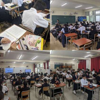 【英語】教室と図書室で分割授業をしています。ひとりひとり丁寧に対応していきます。(2組)