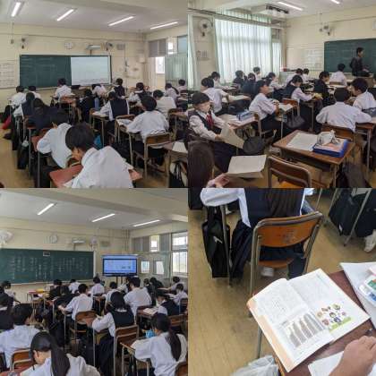 【英語】【社会】先週行われたテストが返却されました。テスト直しの仕方の説明がありました。テストは振り返りが大事です。今回間違えた個所をしっかり復習してください。(1、3組)