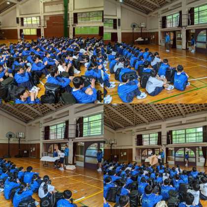 入所式の後、施設利用の注意と布団のたたみ方の説明がありました。
