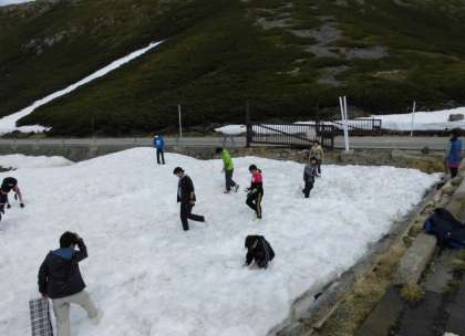 1日目の午後は乗鞍畳平で雪遊びを楽しみました。大阪ではめったに降らない雪ですが、乗鞍では5月なのにまだ、雪がたくさん残っていました。