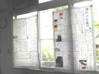 5月25日の校外学習で、大阪市内の戦跡めぐりを行いました。そこで学んだことを班ごとに新聞にまとめました。