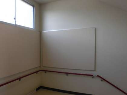 本館の南側の階段の1階と2階(写真参照)、2階と3階の踊り場に新しく掲示板を設置しました。