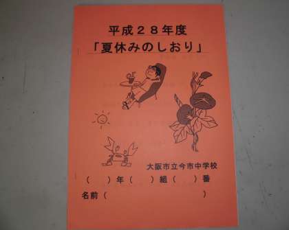 なお、全校生徒に「夏休みのしおり」を配付しています。A4サイズでオレンジ色の表紙です(下のほうの写真参照)。学年ごとの夏休みの宿題や、生活面で気をつけることなどを記載しています。ぜひご確認ください。