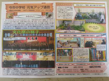 15日に、全校生徒に「今市中学校 元気アップ通信 11月号 」を配付しました。
