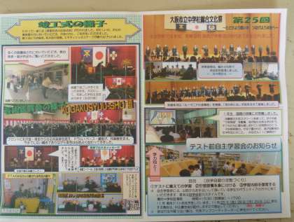4日に行われた文化祭や、5日の竣工式、また、10月22日に行われた「大阪市立中学校総合文化祭」(総文祭)などの様子を紹介しています。ぜひ、ご一読ください。