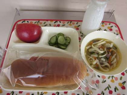 肉うどんは、だしこんぶとけずりぶしでだしをとり、味付けされています。また、しょうがの味もよくきいていました。
